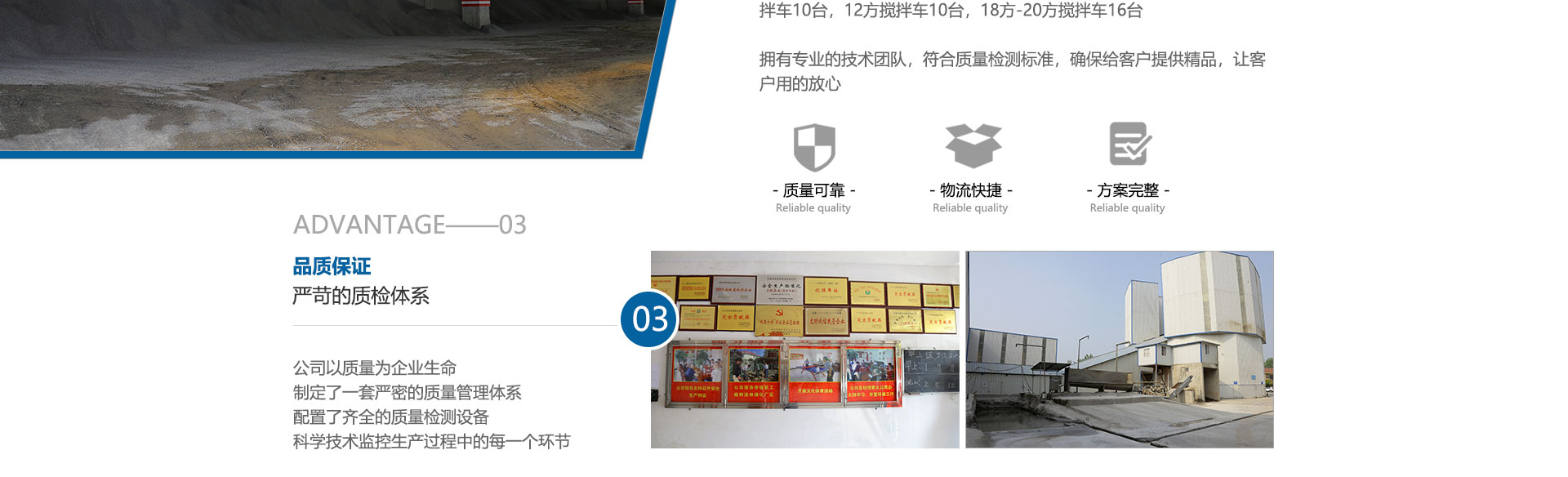 關(guān)于我們安徽宏順新型建材有限公司成立于二零一一年五月,是裕安區(qū)組織部招商引資重點(diǎn)工程項(xiàng)目。落戶(hù)于六安市裕安區(qū)韓擺渡鎮(zhèn)百市集村。公司注冊(cè)資金2000萬(wàn)元,主要生產(chǎn)銷(xiāo)售商品混凝土、干粉砂漿、加氣磚等新型建筑材料。公司擁有三一HX180生產(chǎn)線(xiàn)兩套,56米泵車(chē)2臺(tái),52米泵車(chē)2臺(tái),46米泵車(chē)2臺(tái),37米泵車(chē)2臺(tái),80、90型車(chē)載泵共6臺(tái),拖泵4臺(tái),10方攪拌車(chē)10臺(tái),12方攪拌車(chē)10臺(tái),18方-20方攪拌車(chē)16臺(tái),公司擁有先進(jìn)完善的成套實(shí)驗(yàn)室儀器設(shè)備,強(qiáng)大的實(shí)驗(yàn)技術(shù)力量。公司總占地面積50畝,已建成辦公樓、職工宿舍樓各一棟,建筑面積2000余平方。已建成全封閉原材料堆場(chǎng)6000平方。已建成倆條年產(chǎn)60萬(wàn)立方米的生產(chǎn)線(xiàn)與其相適應(yīng)的變電設(shè)施。我公司以質(zhì)量為企業(yè)生命,為確保產(chǎn)品質(zhì)量,公司制定了一套嚴(yán)密的質(zhì)量管理體系,并配置了先進(jìn)齊全的質(zhì)量檢測(cè)設(shè)備,應(yīng)用先進(jìn)的科學(xué)技術(shù)監(jiān)控生產(chǎn)過(guò)程中的每一個(gè)環(huán)節(jié),以確保產(chǎn)品合格率達(dá)99%以上?!百|(zhì)量為本、服務(wù)至上,開(kāi)拓經(jīng)營(yíng)、安全生產(chǎn)”...